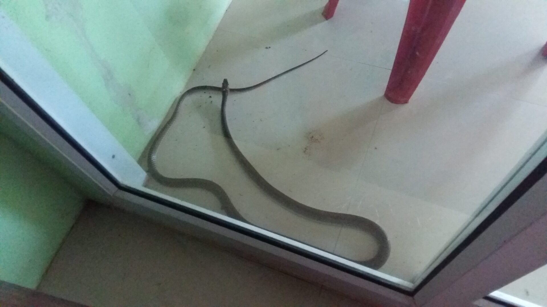 Ik zit op het gemak achter mijn laptop als ik vanuit de woonkamer Wiet ‘Oi oi!’ hoor roepen. Ik steek snel mijn neus om de hoek en zie nog net het staartpuntje van een groene wurgslang de keuken verlaten. Uitleg. De huizen in Isaan kennen nogal een open bouw om de wind vrij spel te geven; dat ventileert lekker. Maar daardoor zit er wel enige ruimte tussen bijvoorbeeld de keukenmuur en de dakrand. Een beetje slang kan dus zo naar binnen plus buiten glippen en dat gebeurt ook regelmatig. Hm, ik ben qua afmetingen waarschijnlijk geen natuurlijke prooi voor deze groene jongen reken ik snel uit. Toch kruip ik iets minder ontspannen weer achter het scherm.